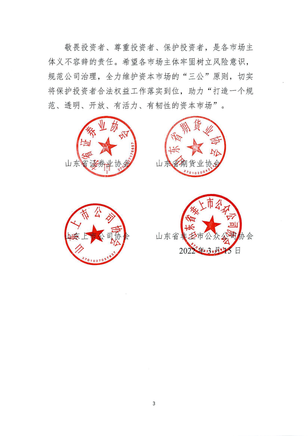 理性认识市场 投资量力而行——致广大投资者的一封信