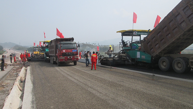 大广高速公路(粤境段)LM2合同成功摊铺沥青混凝土下面层试验段