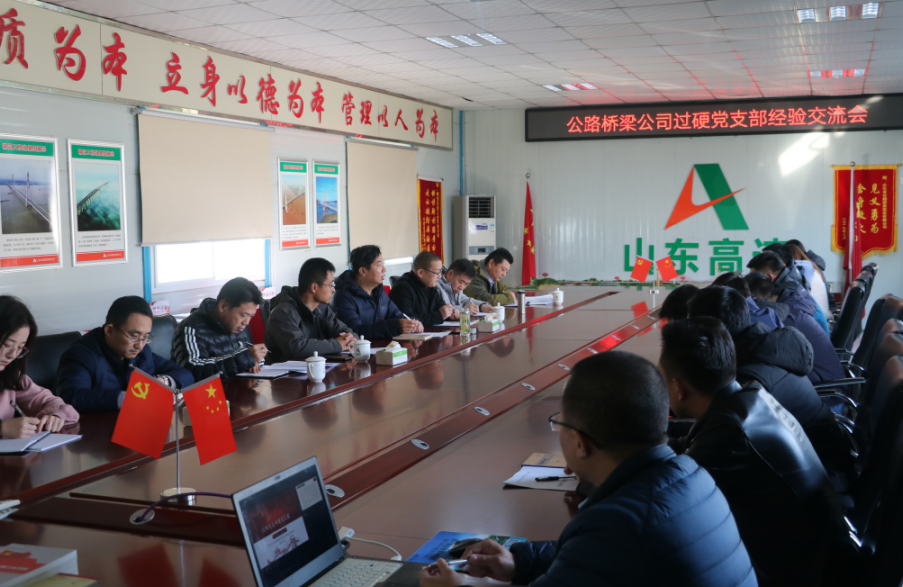12月5日,公路桥梁公司党委在泰东黄河大桥项目部组织召开了过硬党支部经验交流会,公司七个党支部的支部书记、委员及各项目专职党务工作者等20余人参加了交流会。
