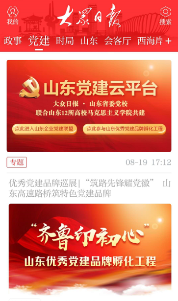 齐鲁儿女印初心,聚指成拳担使命。8月20日,大众日报、山东省委党校联合12所高校马克思主义学院携手共建的山东党建云平台上线,同步启动“齐鲁印初心”山东优秀党建品牌孵化工程,面向全省征集党建优秀做法。山东高速路桥集团股份有限公司党委创设的“筑路先锋耀党徽”特色党建品牌优秀做法成功入选。